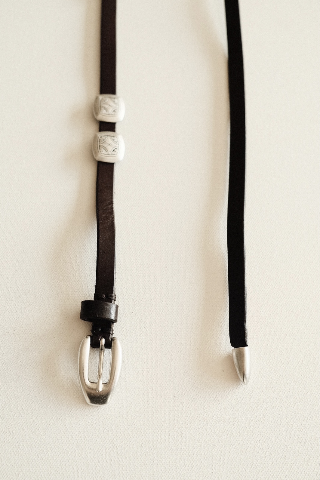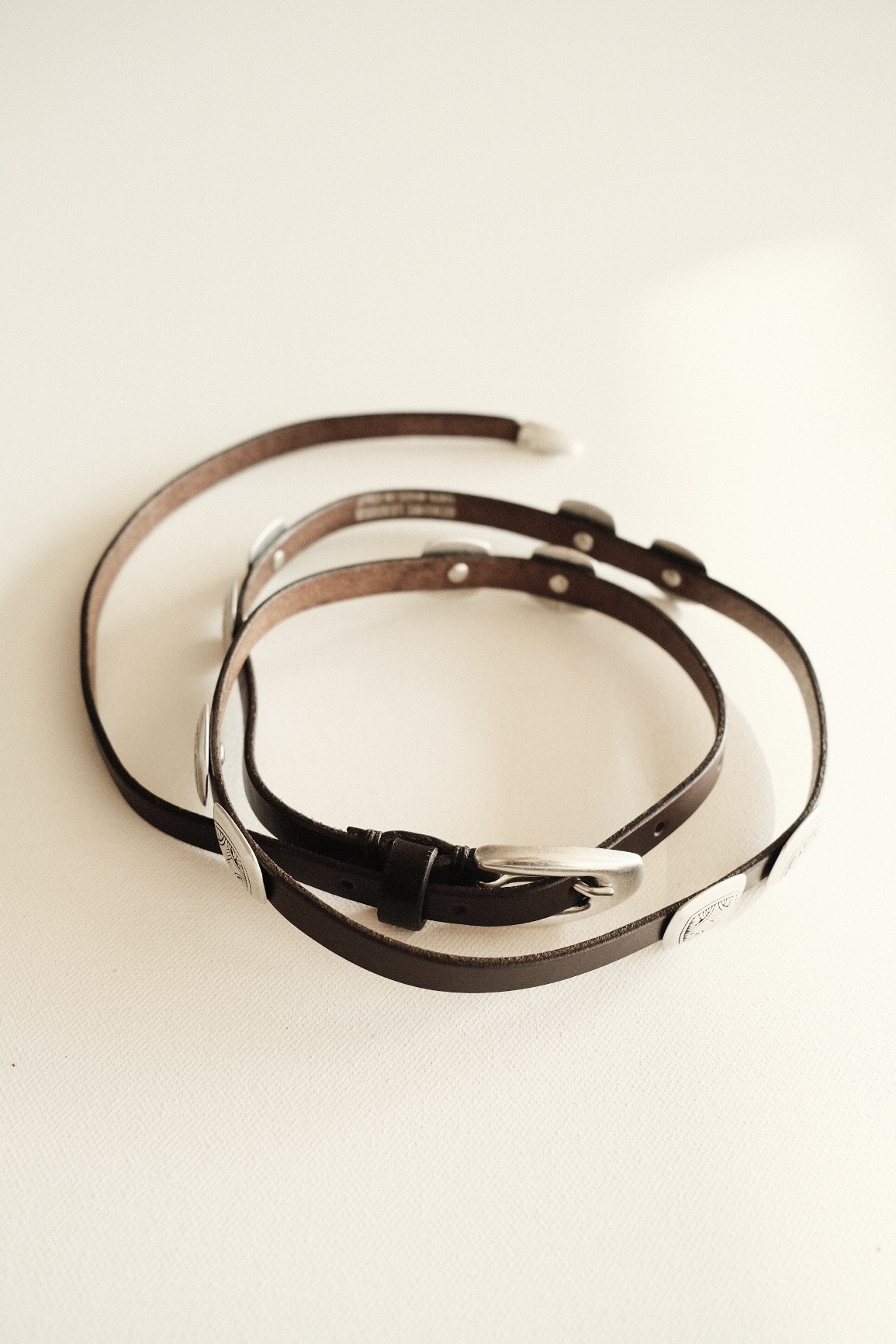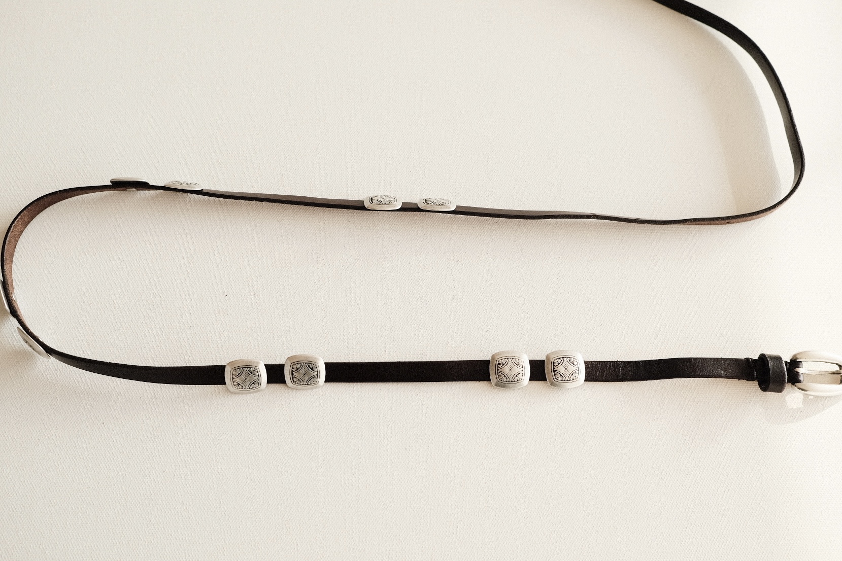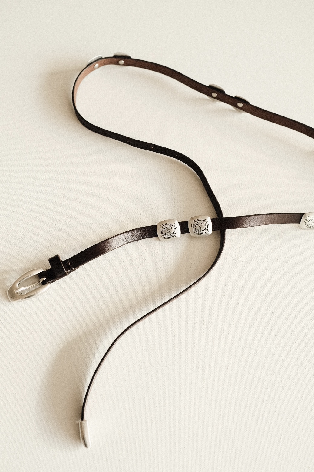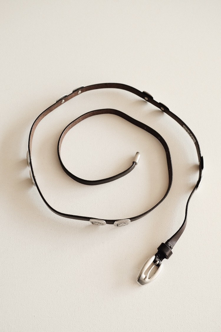 시에라 슬림 콘초 벨트 (Sierra Slim Concho Belt)는 아메리칸 웨스턴 무드를 현대적으로 재해석한 콘초 벨트로, 세련되고 유니크한 스타일을 완성해주는 얇고 긴 가죽 벨트입니다.